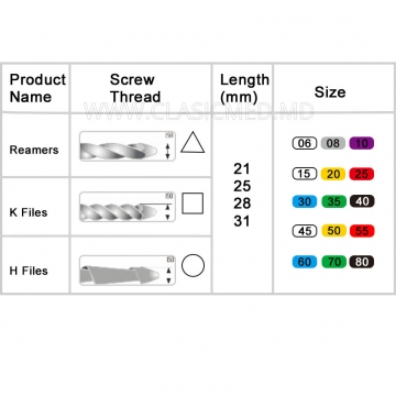 Fabricat din oțel inoxidabil de calitate medicală de înaltă calitate, cu tehnologie precisă de prelucrare a canalelor. Au flexibilitate ridicată și rezistență la rupere, cu eficiență ridicată de tăiere cu o secțiune transversală în formă de diamant.