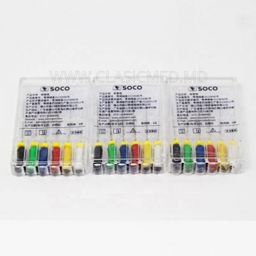 K-fișiere SOCO SCF-SS din oțel inoxidabil pentru utilizare manuală. Sunt folosite pentru extinderea și trecerea canalului radicular. Au duritate medie.