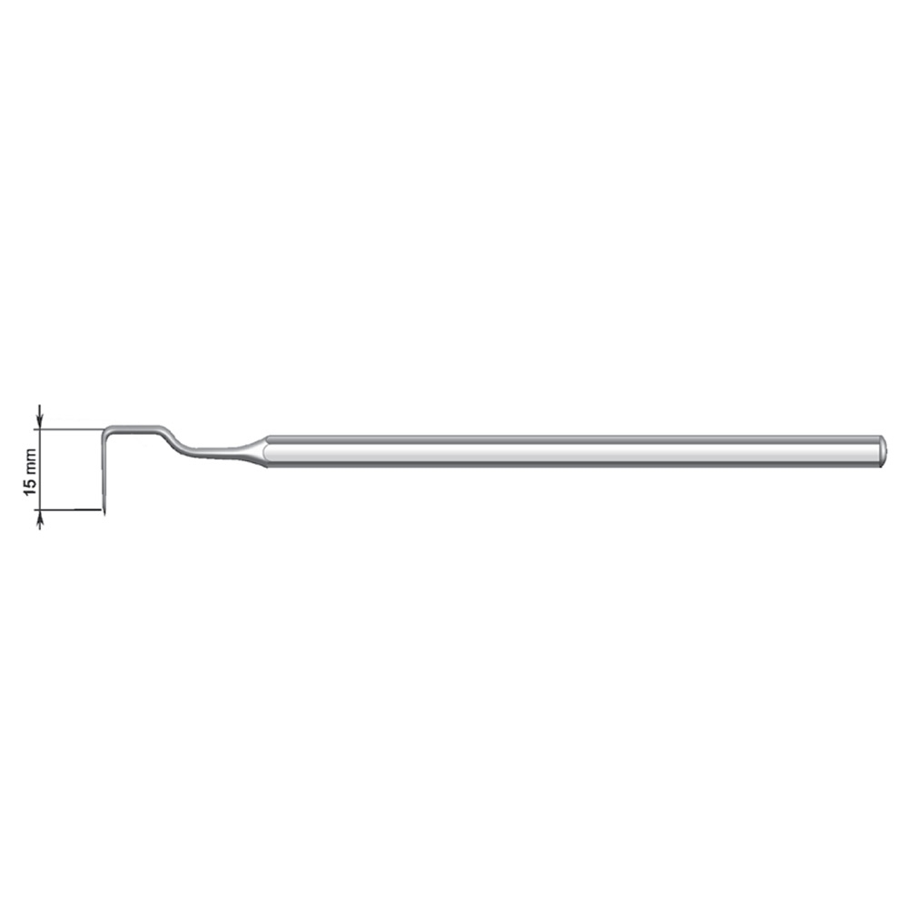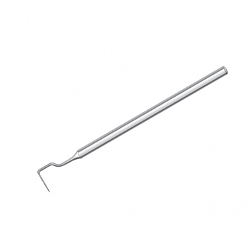 Sondă dentară in unghi este un produs solid cu o lungime de 147 mm, format dintr-un mâner pe șase fețe și o parte de lucru tăiată ascuțit.