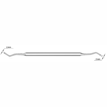 Инструмент предназначен для удаления из кариозной полости остатков пищи, поврежденного дентина, временных пломб, мягкого зубного налета, наддесневых зубных отложений. Длина — 160 мм, две рабочих части в виде лопатки с закругленным концом большого размера.