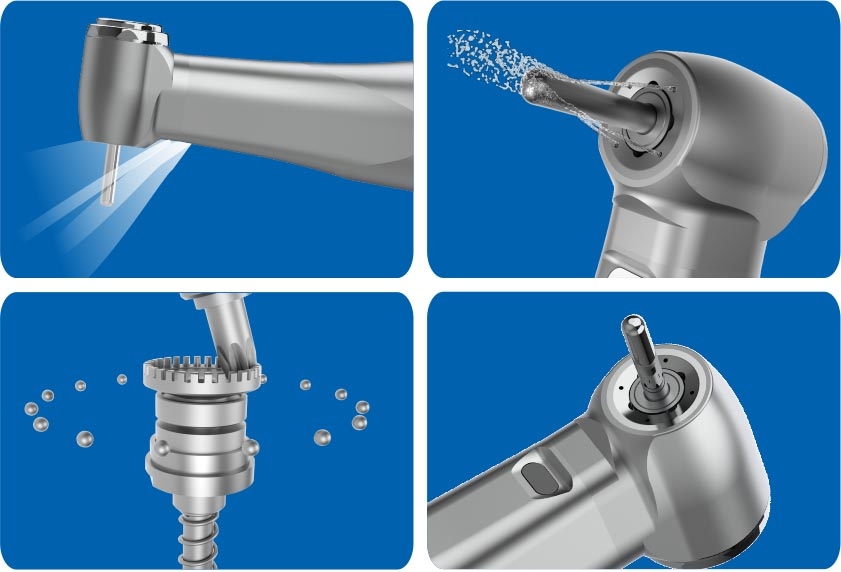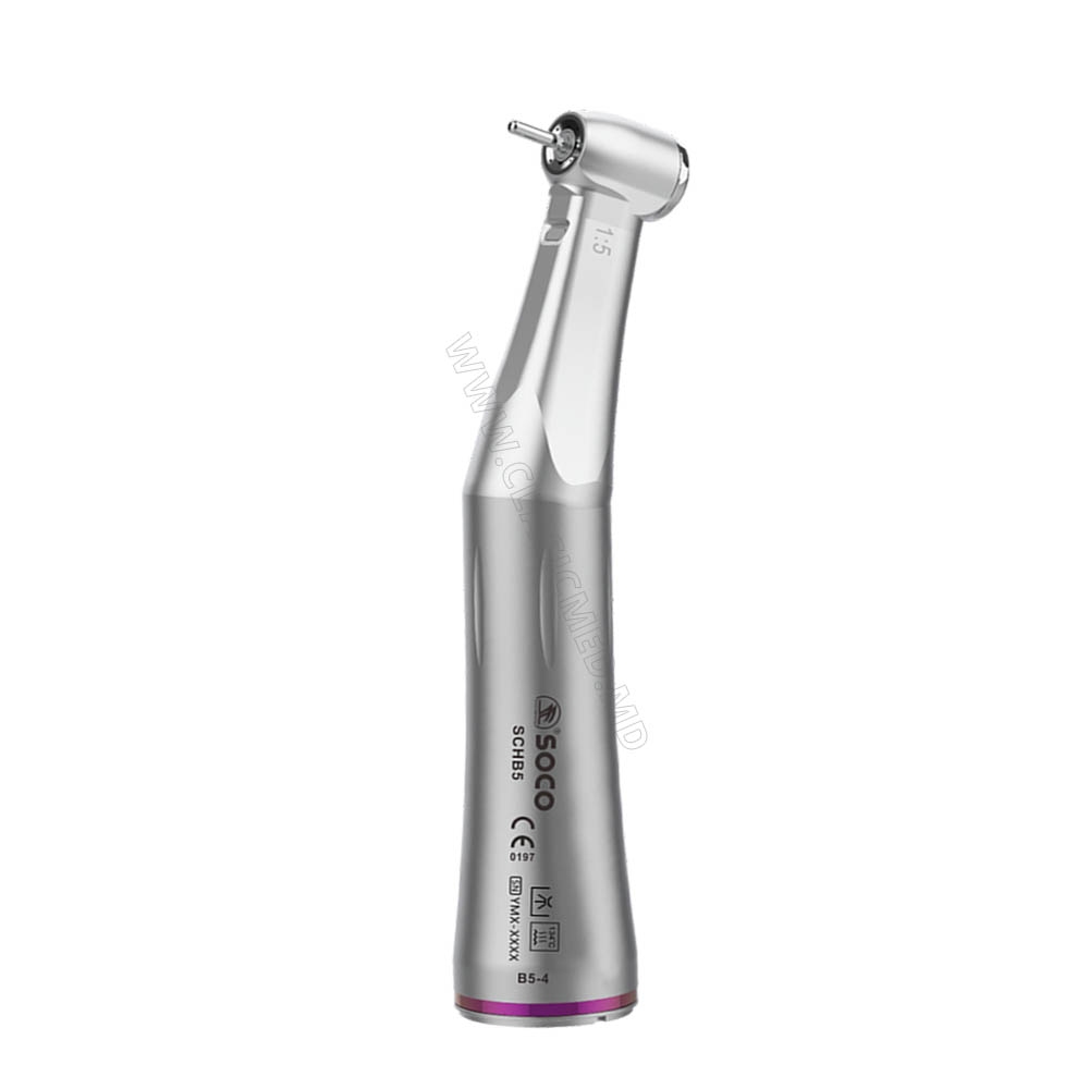 Угловой наконечник для стоматологов SOCO B5-4 с кнопочной фиксацией, стекловолоконным светодиодом и передаточным числом механизма 1:5. Отличное внутреннее охлаждение благодаря 4х точечному спрею. Усиленная, тихая и большая головка с надёжными подшипниками.
