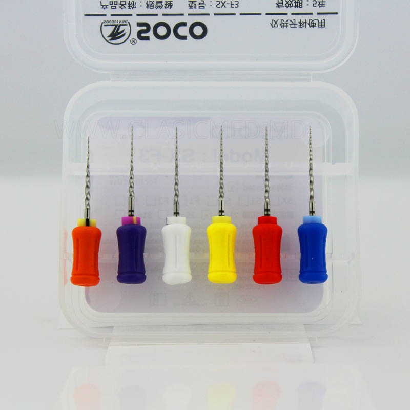 Fișiere de mână Niti Super Files Soco sunt fișiere de mână care pot accelera procesul de canal radicular cu forma lor. Diferitele geometrii ale conurilor le fac instrumente versatile.