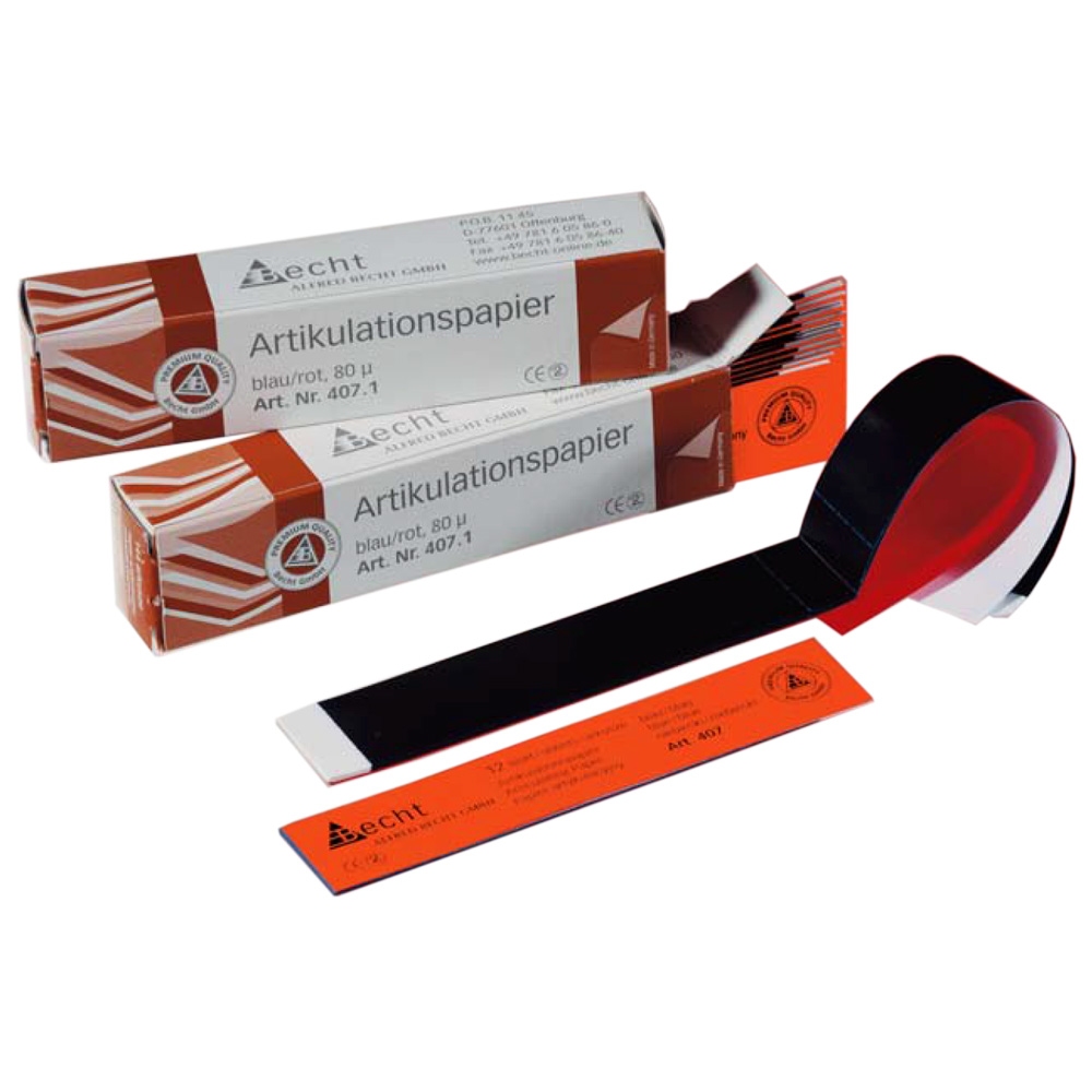 Артикуляционная бумага служит для определения окклюзии зубов и артикуляции. Артикуляционная бумага позволяет определить силу и направление прикуса за счет маркирующего эффекта. Бумага «Alfred Becht» обладает высокой прочностью, что отличает ее от продукции многих других производителей.