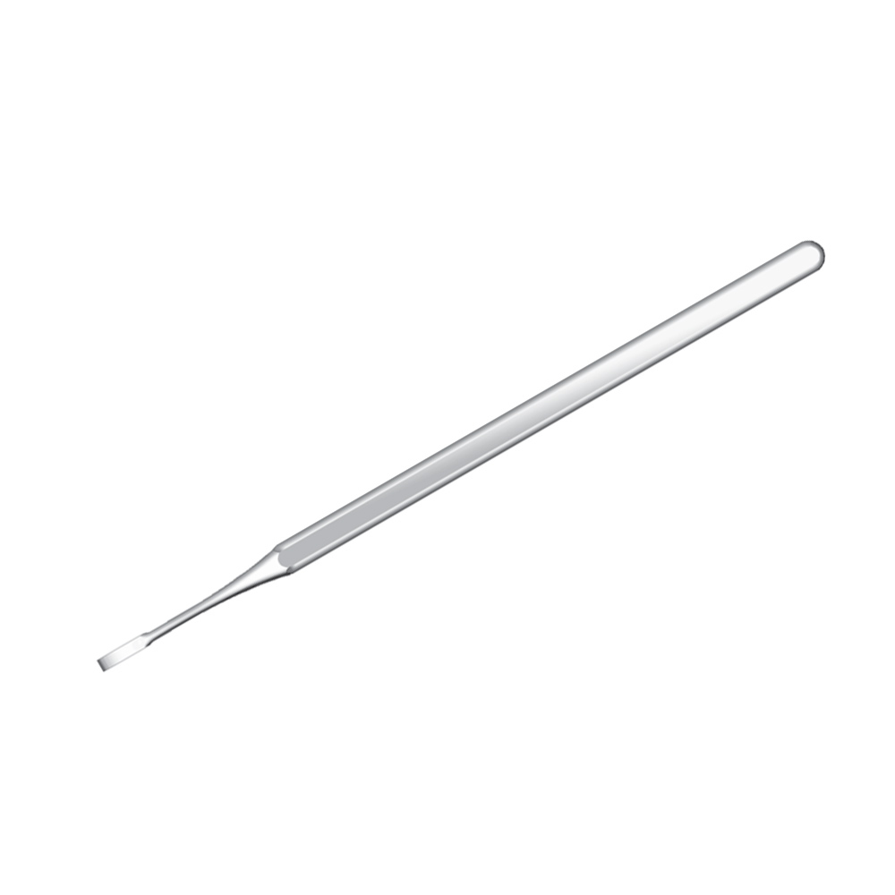 Долото полуклиновое №1, 2 мм. Стоматологическое долото используется для сглаживания и/или удаления острых выступающих краев кости, а также часто используются как инструменты для механической обработки кариозных полостей зубов.
