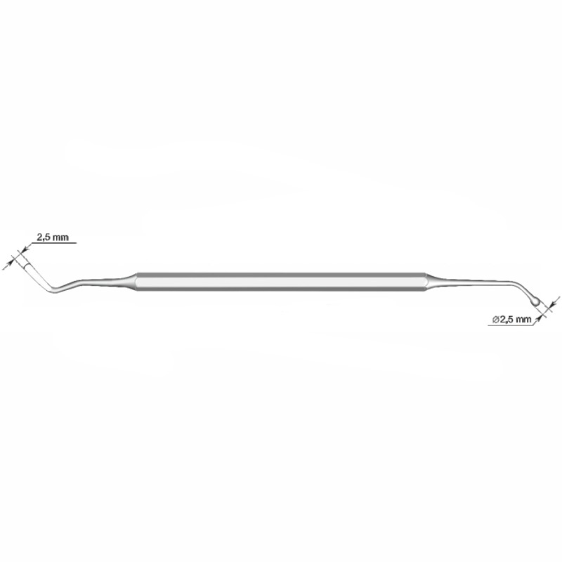 Инструмент предназначен для внесения в обработанные кариозные полости лекарственных прокладок в пастообразном состоянии, уплотнения пломбировочного материала, конденсации его к стенкам полости, а также для формирования пломб. Длина — 157 мм мм, две рабочие части — шаровидная и гладилка.