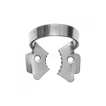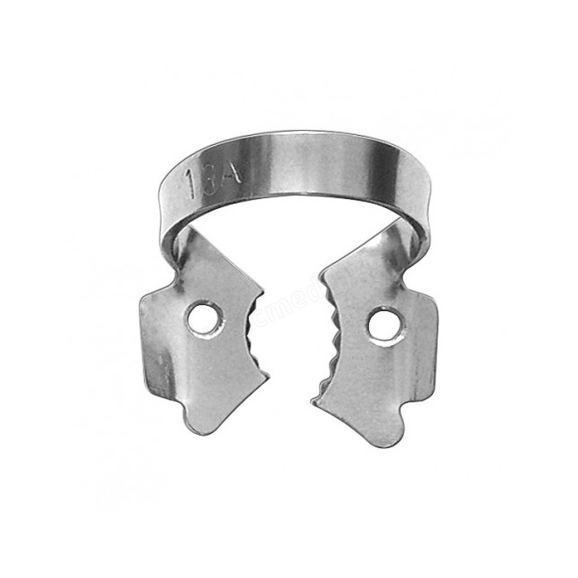 Кламп № 13A - это асимметричный кламп с горизонтальными зазубренными "челюстями" (tiger-тип), правосторонний. Используется для верхних моляров с треугольной формой коронки, наиболее часто используется для наложения на верхние моляры, возможно наложение на третьи верхние моляры.