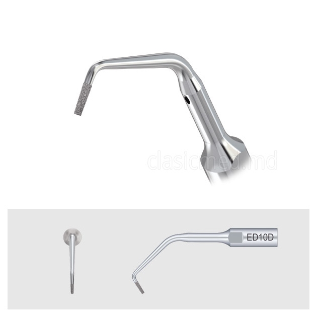 Насадка ED10D для скалера с алмазным покрытием (40 мкм) для высокоэффективного выравнивания поверхности корней в ретроградной подготовке зубных каналов.
