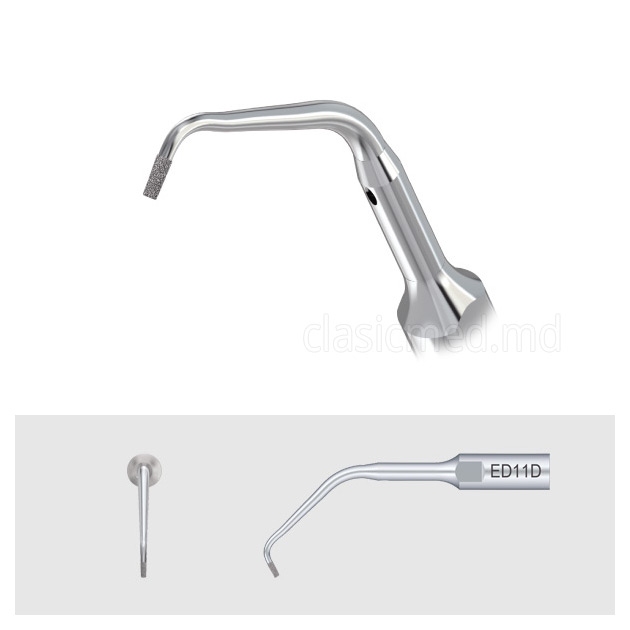 Насадка ED11D для скалера с алмазным покрытием (40 мкм) для высокоэффективного выравнивания поверхности корней в ретроградной подготовке зубных каналов.
