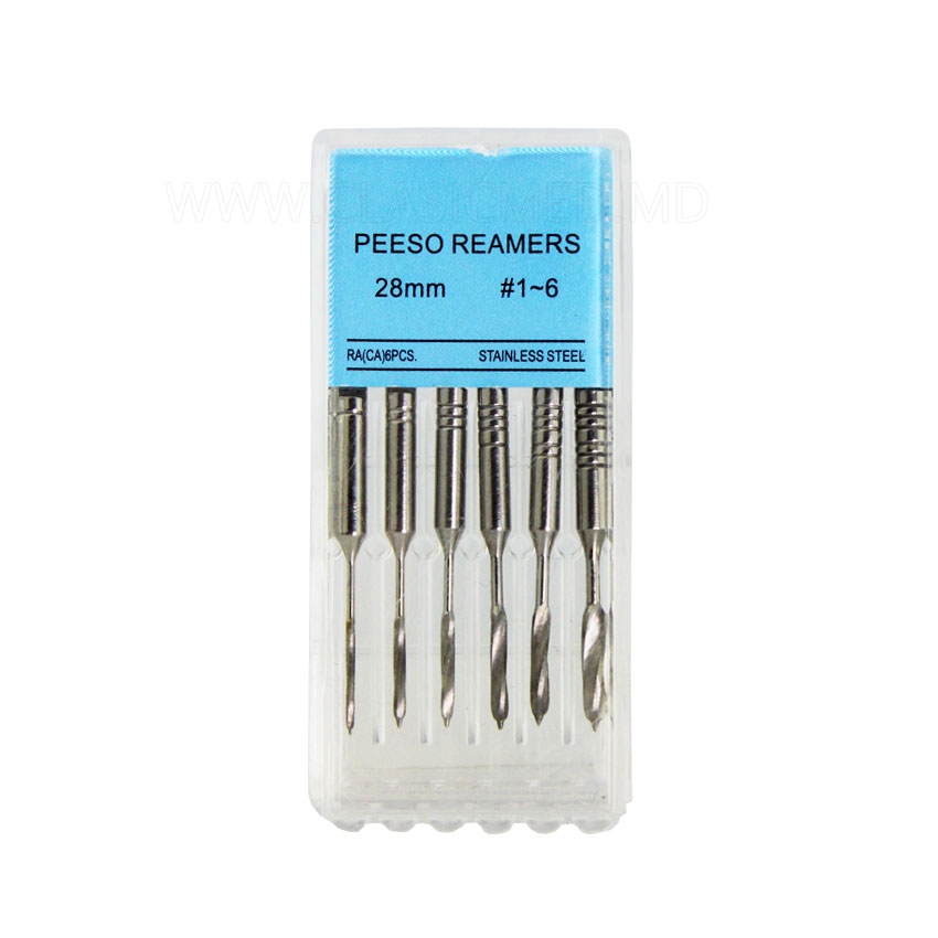 Пьезоримеры (римеры) Peeso Reamers Rotary SOCO - это ротационные инструменты (дрили), служащие для расширения устья канала, а также для обработки прямой, прикоронковой части канала. Инструменты Peeso отличаются от расширителей Gates рабочей частью, имеющую более длинную, цилиндрическую форму с шире раставленными режущими гранями.