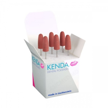 Полир KENDA RED Acrylic в форме закругленного конуса предназначен для финальной обработки и полировки как установленных, так и не установленных протезов и эластичных частичных протезов из хром-кобальтовых сплавов. Полирует акрил, не повреждая сплав. Средняя зернистость.