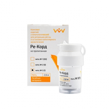 Ретракционная нить Ре-Корд нить №3, непропитанная - это стоматологический материал для ретракции десны и остановки капиллярного кровотечения.