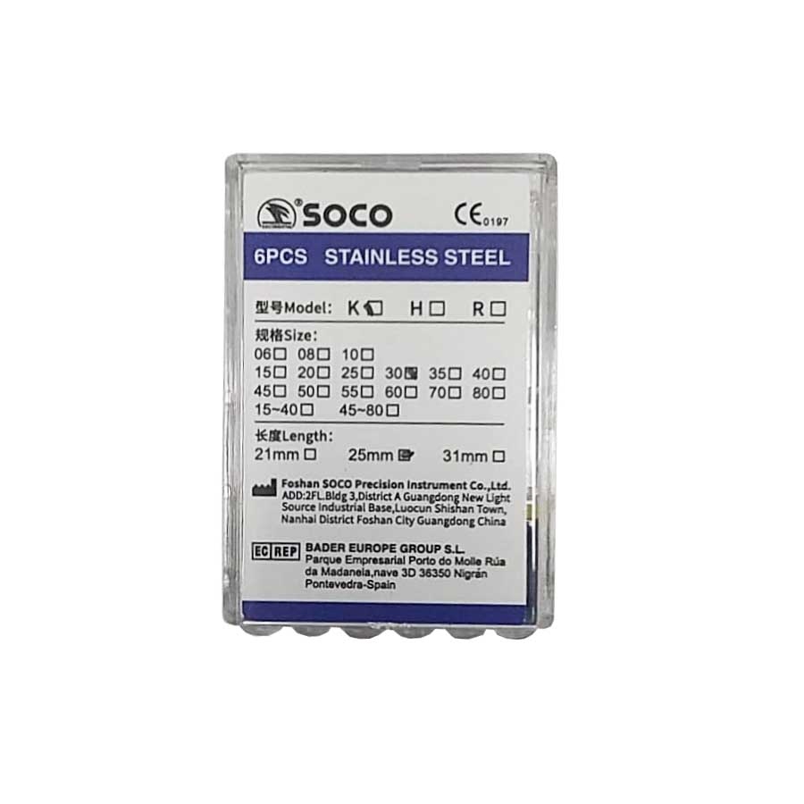 К-файлы SOCO SCF-SS #30 из нержавеющей стали для ручного использования. Применяются для расширения и прохождения корневого канала. Обладают средней жесткостью. 25 мм.