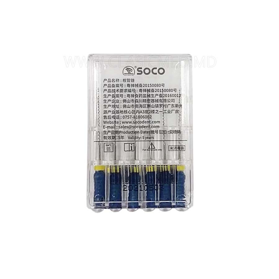 H-Файлы SOCO изготовлены из нержавеющей стали и снабжены пластиковыми ручками и силиконовыми стопперами. Поставляются в наборе из шести H-файлов. H-Файлы SOCO очень прочные и достаточно гибкие для минимизации риска травмирования при обработке канала.