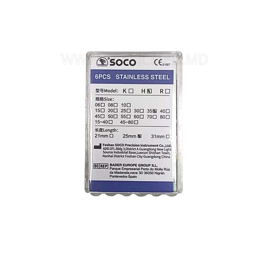 Ручные H-Файлы SOCO #35, 25 мм - это эндодонтический инструмент для расширения и прохождения корневого канала с высокой режущей способностью (в сравнении с K-файлами). H-Файлы SOCO предназначаются для ручной механической обработки корневых каналов (зондирование, выравнивание стенок, расширение).