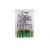 H-Файлы SOCO изготовлены из нержавеющей стали и снабжены пластиковыми ручками и силиконовыми стопперами. Поставляются в наборе из шести H-файлов. H-Файлы SOCO очень прочные и достаточно гибкие для минимизации риска травмирования при обработке канала.