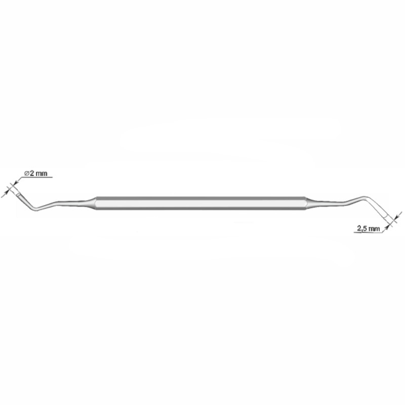 Инструмент предназначен для внесения в обработанные кариозные полости лекарственных прокладок в пастообразном состоянии, уплотнения пломбировочного материала, конденсации его к стенкам полости, а также для формирования пломб. Длина — 157 мм, две рабочие части штопфер и гладилка крупного размера.