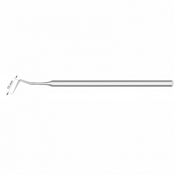Инструмент предназначен для исследования поверхности зубов на предмет выявления кариеса, отложений на зубах и т.д. Длина — 155 мм, рабочая часть загнута под углом 25°, длина рабочей части — 15 мм.
