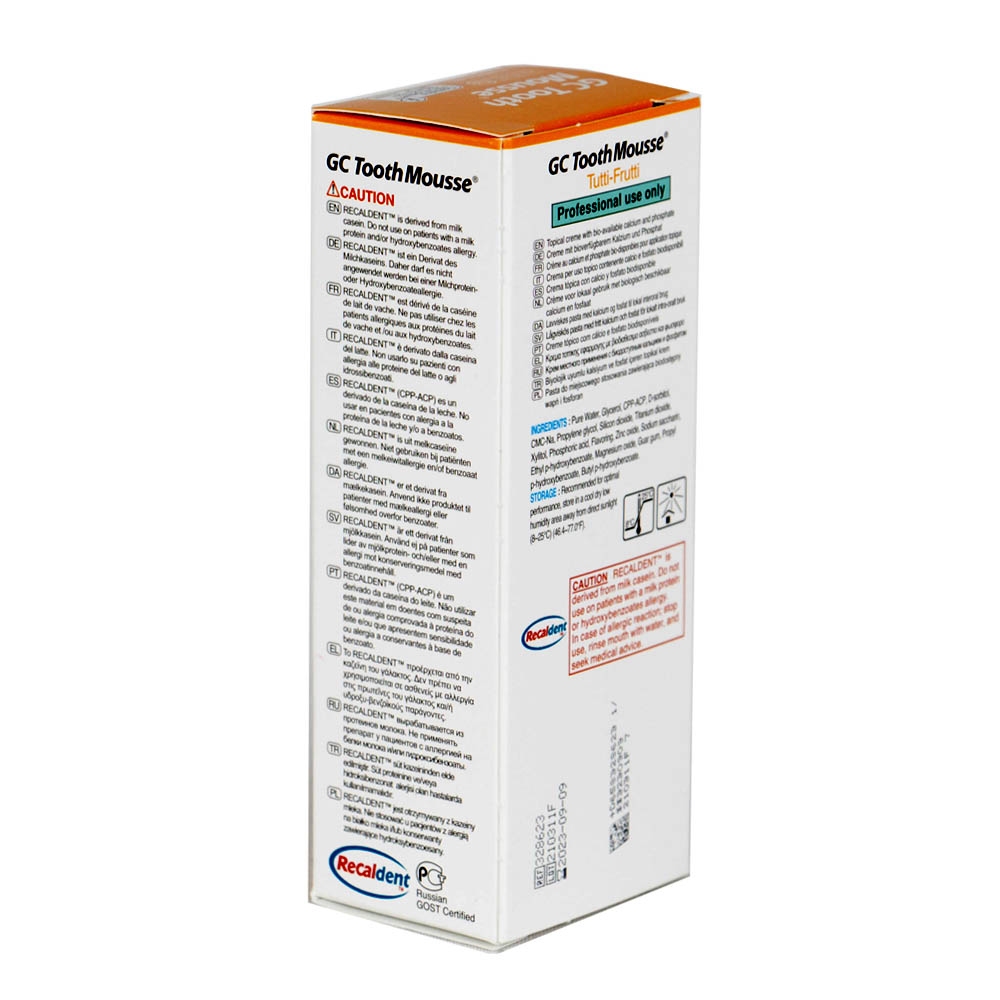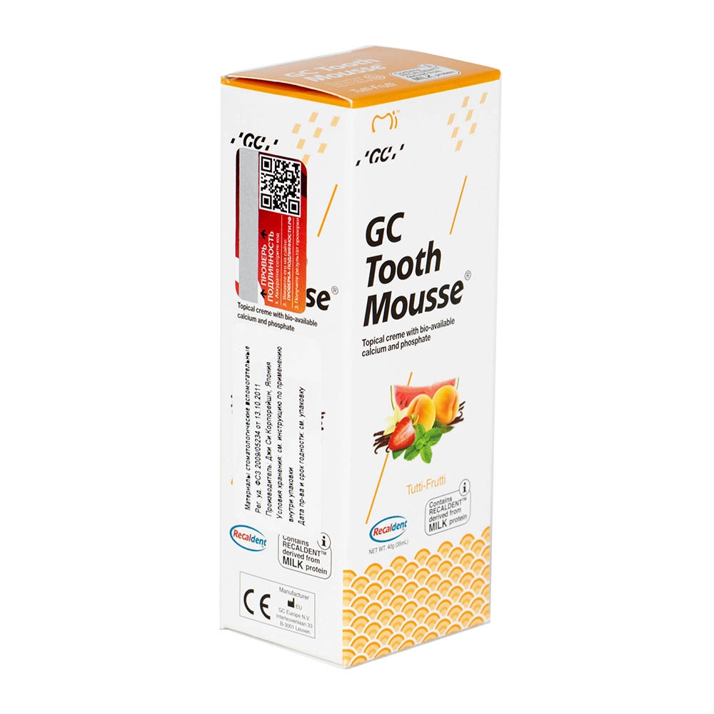 Зубной гель GC Tooth Mousse - это реминерализирующий, водорастворимый стоматологический крем для восстановления, укрепления и защиты эмали. Тутти-фрутти.